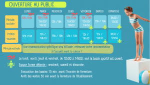 Piscine très agréable.Bassin pour tous les âges. Aussi bien a l'intérieur qu'à l'extérieur.Transats a l'extérieur. Petit snack pour le goûter.Diverse activitées proposer.Personnel de bon conseil et très a l'écoute.